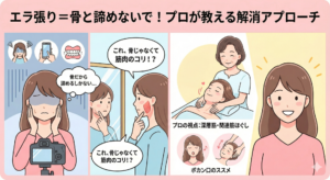 「エラ張りの原因の7割は、骨ではなく『筋肉のコリ(咬筋)』と『むくみ』なんです!」